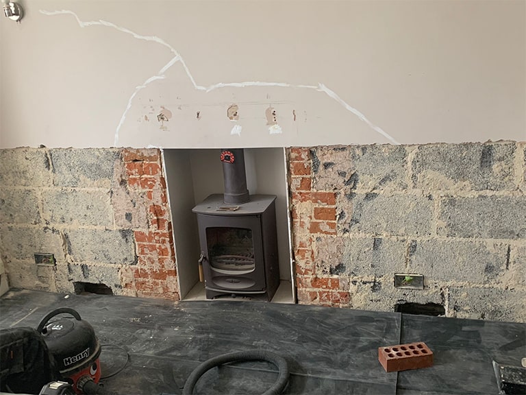 High moisture readings to the chimney breasts were due to historic and possibly current water penetration into the chimney flues. As a result, the salts and minerals dissolved were spoiling the decorative finish of the plaster.