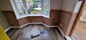 Ms. J contacted her local Prokil branch, Head Office in Bournemouth, to conduct a low-level remedial damp proofing plasterwork to the external walls of the dining room.