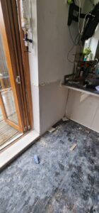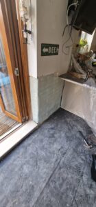A waterproof membrane was added after DPC injection in some areas of the walls, and tanking slurry was applied, depending on the wall’s depth.