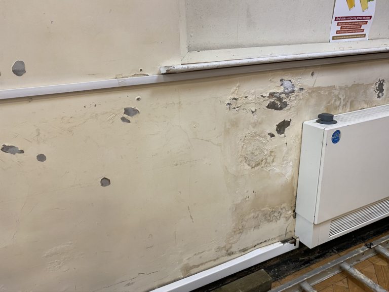 Once we were given the details of the problem, we arranged a no obligation survey with the team at the Liberal Club. One of our qualified damp surveyors attended the facility to carry out investigations into the cause of the problem. From this, it was found that the decorative spoiling had been caused by a historic gutter leak. As this leak worsened over time, it contributed to penetrating damp.