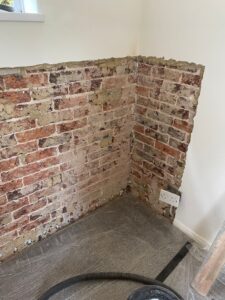 The treated area was finished with a multi-finish plaster and skirting boards were reinstated, leaving the area ready to be decorated by the customer or others. All rubbish was removed.