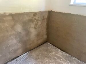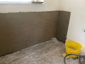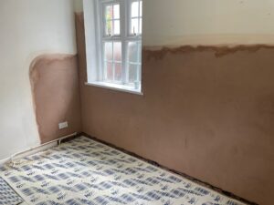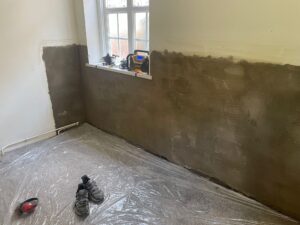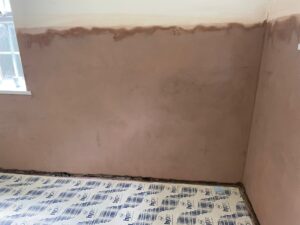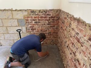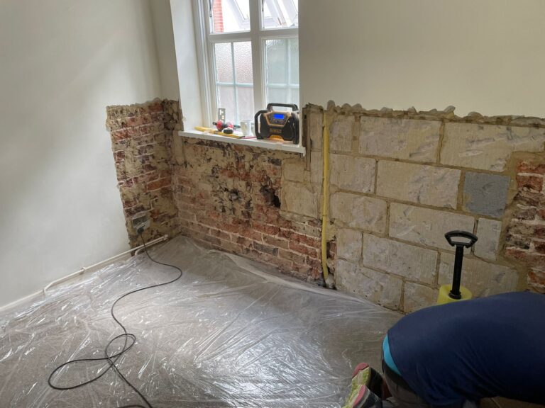A damp proof course (DPC) was injected into the masonry followed by a tanking slurry mix, which was applied to the wall.