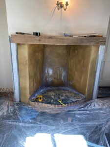 Neil found that this phenomenon most likely happened due to the previous rendering of the original brick fireplace area, done by another company.