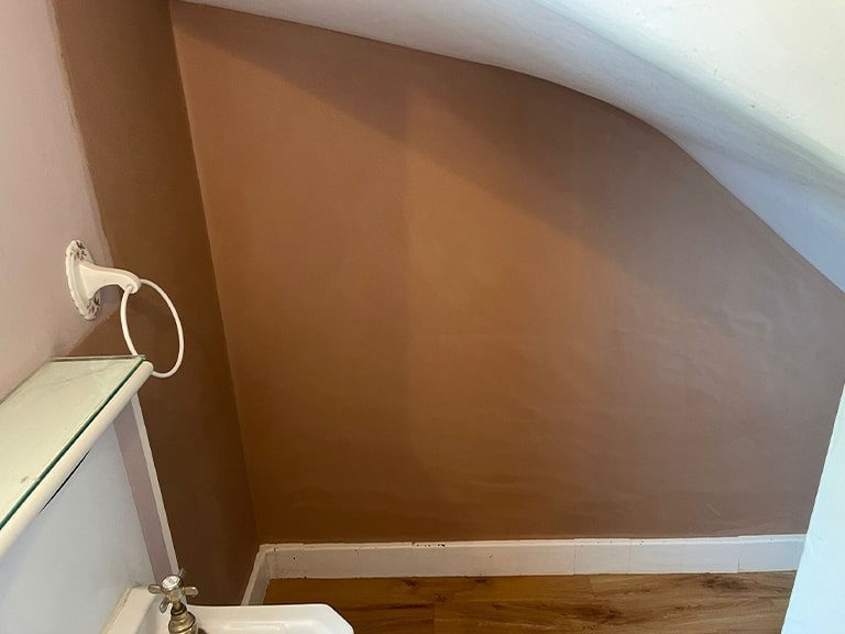It was decided that in the affected areas, the customer would require a new damp proof course to be installed and a specially formulated render mix applied to internal walls. Find out how we tackled rising damp affecting the cloakroom below.