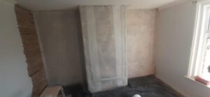 Following the damp inspection, Neil submitted his report to Mrs F stating the damp was due to the external right-hand wall, which had originally been an internal wall with another terrace property that is no longer standing due to bombing from the war that had retrofit rendering.