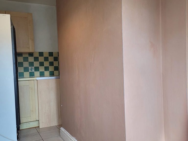 With the new multi-finish plastering on, the wall was now ready for the homeowners to paint, ready to enjoy using their kitchen and dining room again.